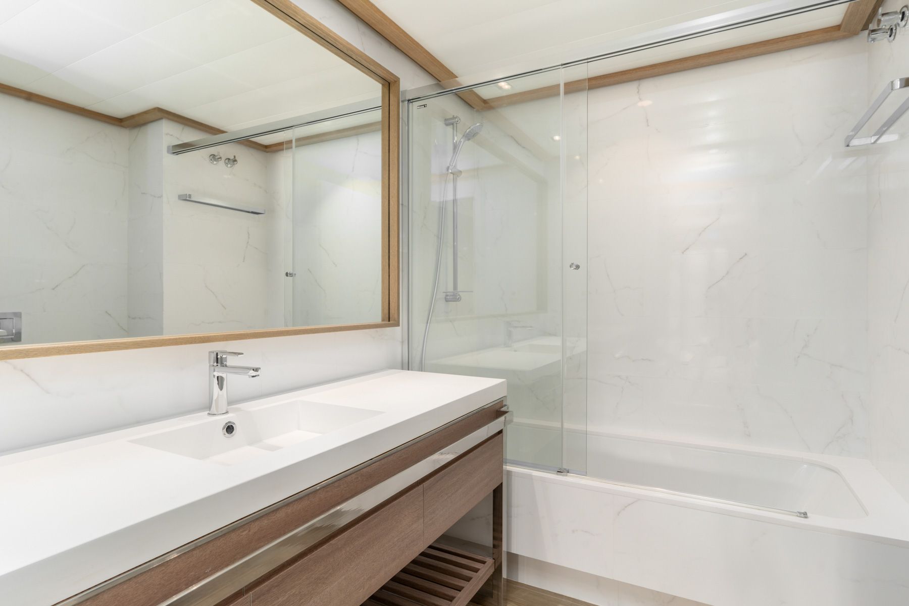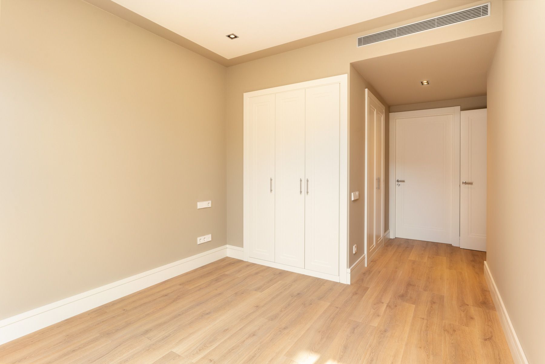 Salón-comedor amplio y luminoso con acabados de gran calidad. Acceso directo a la cocina y salida a la terraza privada. Amplios dormitorios, todas las puertas y armarios empotrados están lacadas en blanco satinado.